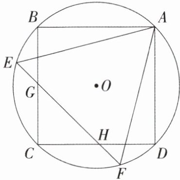 15. 如图,正方形 ABCD 和正三角形 AEF 都内接于 $ \odot O $,EF 与 BC,CD 分别交于点 G,H.若 $ AE = 6 $,则 EG 的长为______.