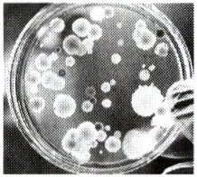3. 如图所示,在培养细菌的过程中,小明发现培养基上出现了几种不同类型的菌落。下列选项是细菌菌落的是(
