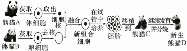 8. (2025重庆期末)因国宝大熊猫数量少,在自然状况下很难相遇,雌性一年仅排卵一次,繁殖后代比较困难,故科学家尝试利用下列方法来繁育大熊猫,过程示意图如图所示,请据图回答: