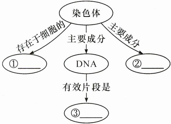 9. (2024临汾期末)下面是同学们整理的基因、DNA、染色体三者的概念图,你认为下列说法错误的是(