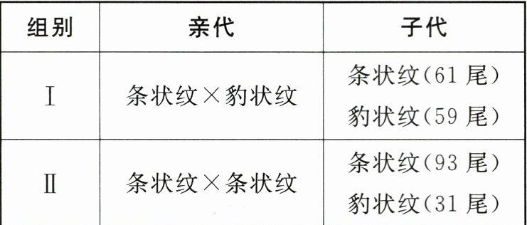 组实验结果,可推断斑马鱼体表斑纹的条纹是显性性状。(4)若用$A和a$表示控制斑马鱼体表斑纹的基因,则组Ⅱ中子代的豹状纹斑马鱼基因组成是