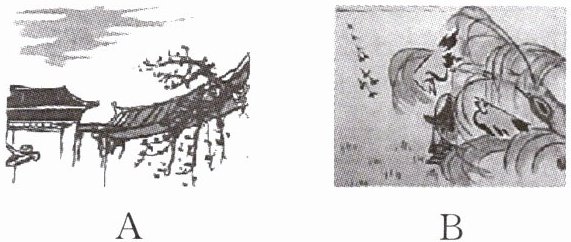 ② 班级准备出一期与春天有关的黑板报,下面是黑板报上的两幅插图,请你为其配上恰当的描写春天的古诗词名句。