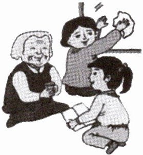 (3)示例:画面中的妈妈在擦拭玻璃,奶奶坐着听孙女给她读书、讲故事。漫画传达了温馨和睦的家庭氛围,表现了敬老爱老的传统美德。