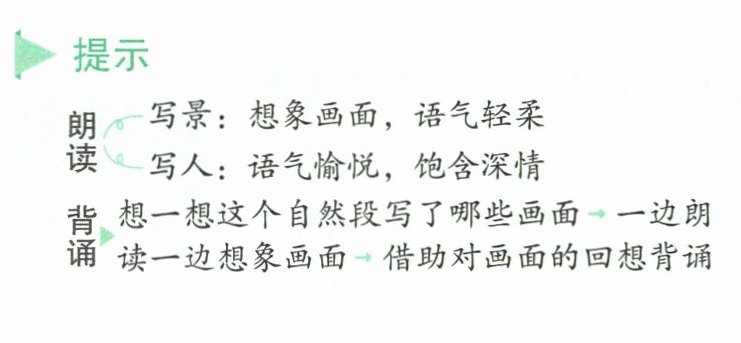 2.阿妈牵着“我”走过“月光闪闪的溪岸”,“细细的溪水,流着山草和野花的香味,流着月光”……你的脑海中浮现出了怎样的画面?课文中还有哪些画面给你留下了深刻的印象?和同学交流。