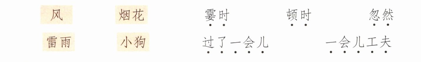 雷雨 —— 夏天的午后,天空忽然阴云密布,电闪雷鸣。霎时,大雨倾盆而下,一会儿工夫,雨水就把池塘灌满了。又过了一会儿,雨停了,小青蛙开心地唱起歌来。