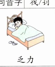 - 组词:乏(乏力)(乏味)(困乏)(解乏)(人困马乏)