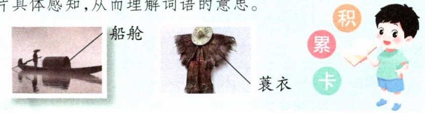 1. 雨天船上的场景,从“我”听到雨点儿打在船篷上的“沙啦沙啦”响声,看到船夫披着蓑衣用力摇橹的情景可以看出。