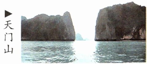 ④〔天门山〕今安徽当涂县的东梁山(古代称博望山)与和县的西梁山的合称,两山隔江相对,像一座天然的大门。