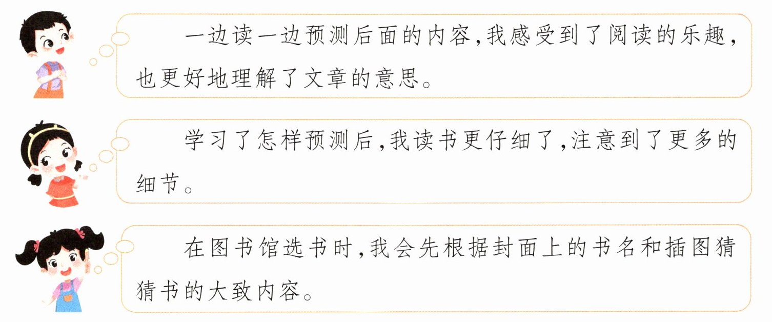 预测的方法对你的阅读有哪些帮助?你是怎么运用预测来阅读的?和同学交流你的心得。