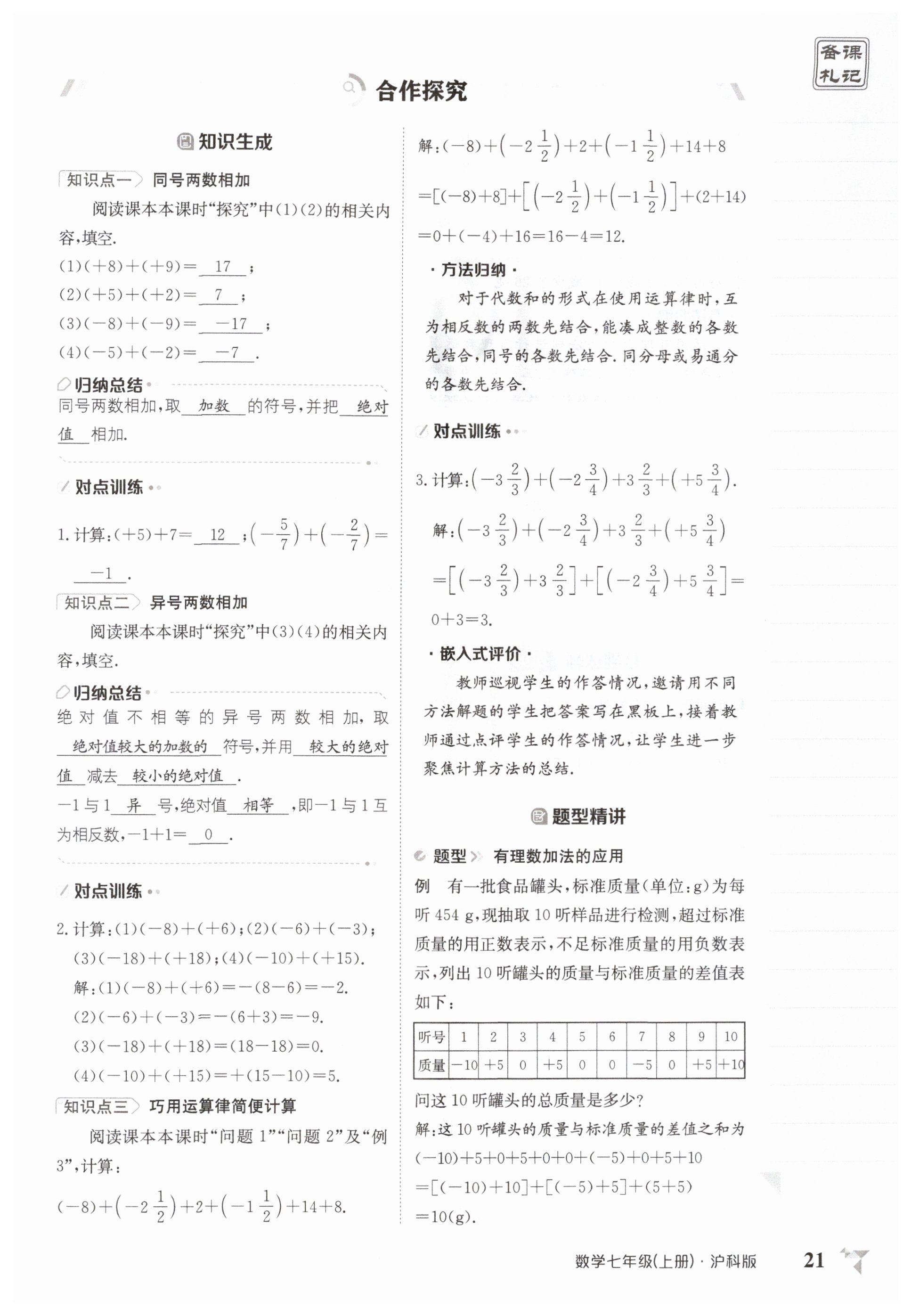 注:目前有些书本章节名称可能整理的还不是很完善,但都是按照顺序排列的,请同学们按照顺序仔细查找。练习册 2025年金太阳导学案七年级数学上册沪科版 答案主要是用来给同学们做完题方便对答案用的,请勿直接抄袭。