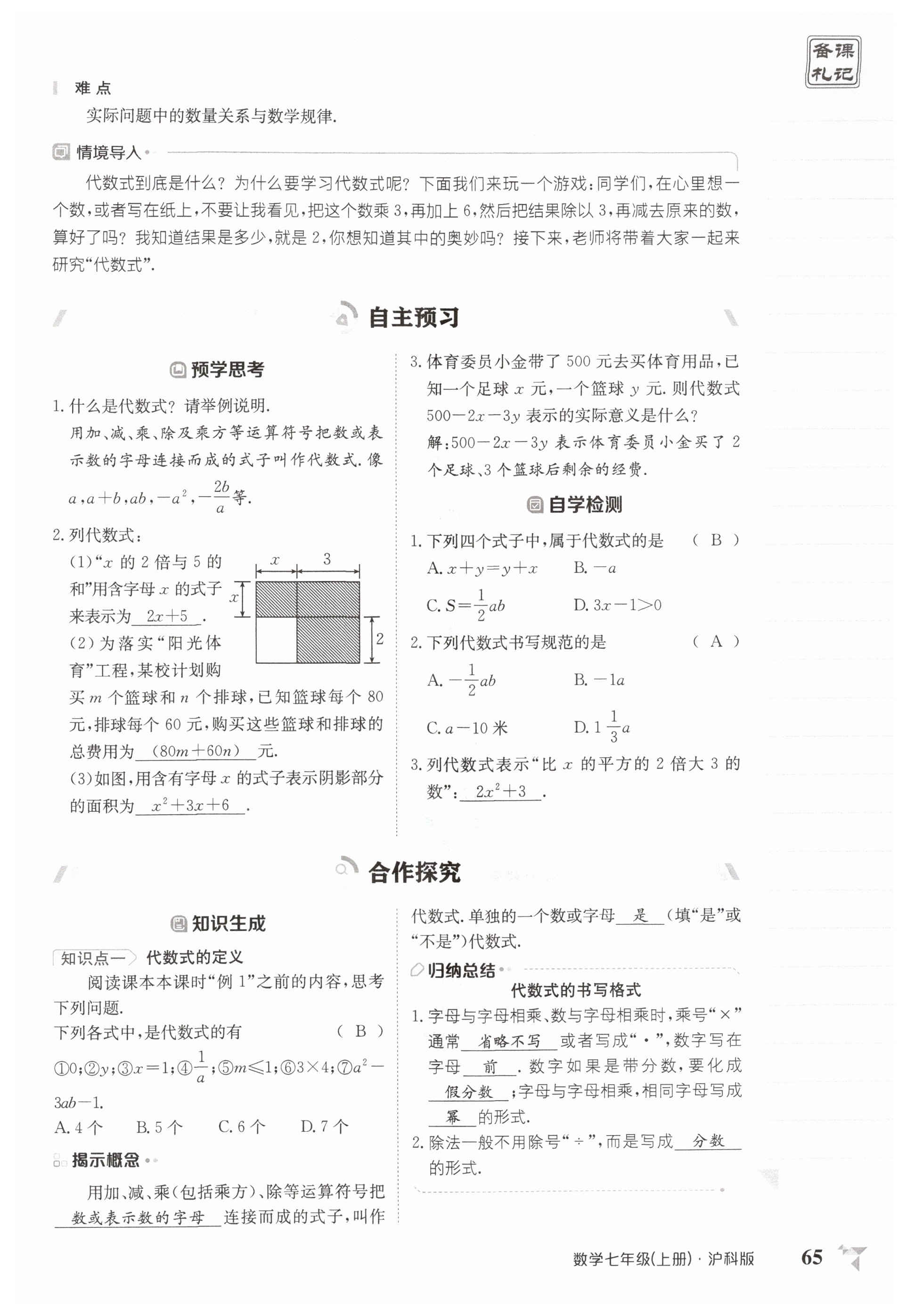 注:目前有些书本章节名称可能整理的还不是很完善,但都是按照顺序排列的,请同学们按照顺序仔细查找。练习册 2025年金太阳导学案七年级数学上册沪科版 答案主要是用来给同学们做完题方便对答案用的,请勿直接抄袭。