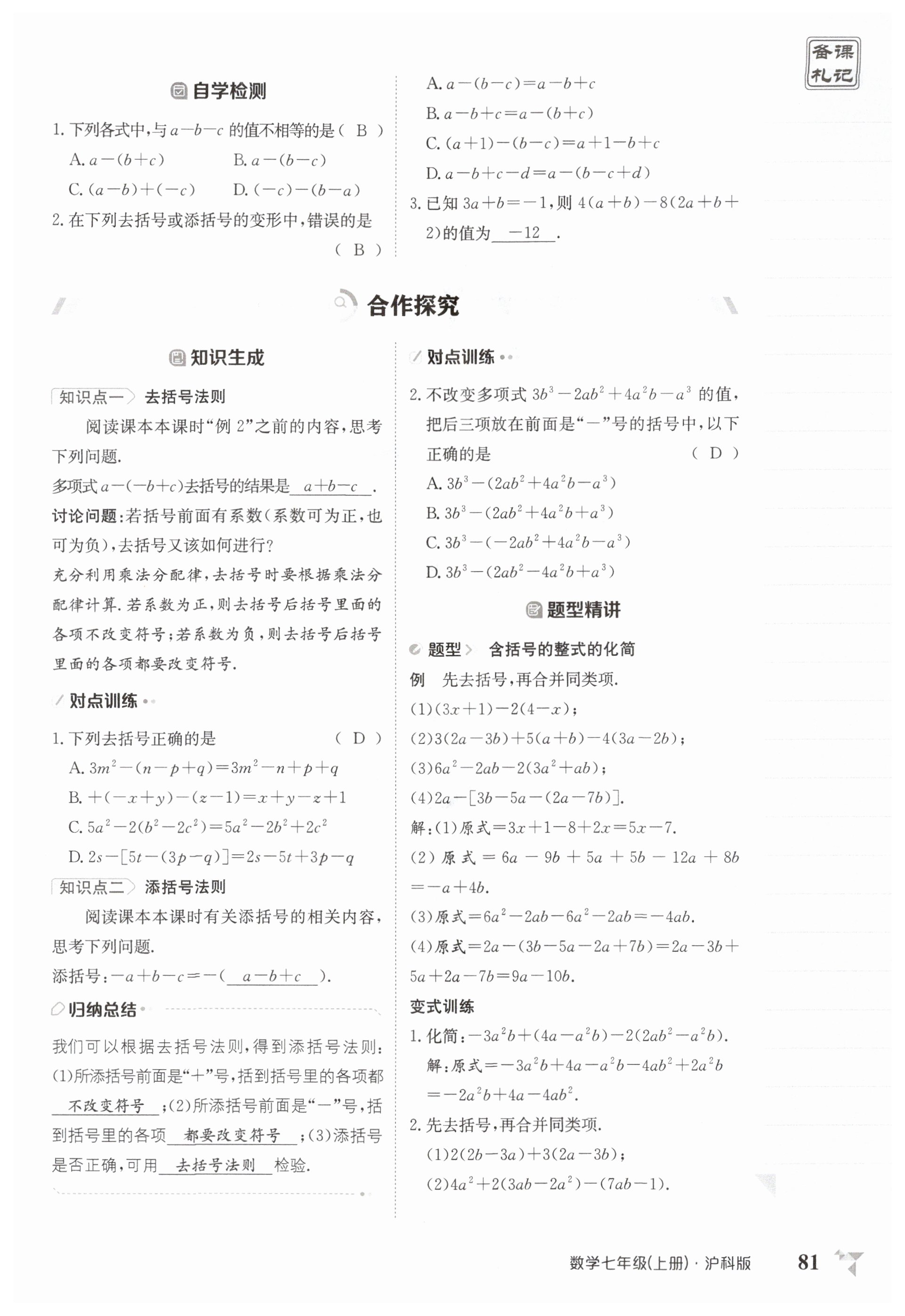 注:目前有些书本章节名称可能整理的还不是很完善,但都是按照顺序排列的,请同学们按照顺序仔细查找。练习册 2025年金太阳导学案七年级数学上册沪科版 答案主要是用来给同学们做完题方便对答案用的,请勿直接抄袭。
