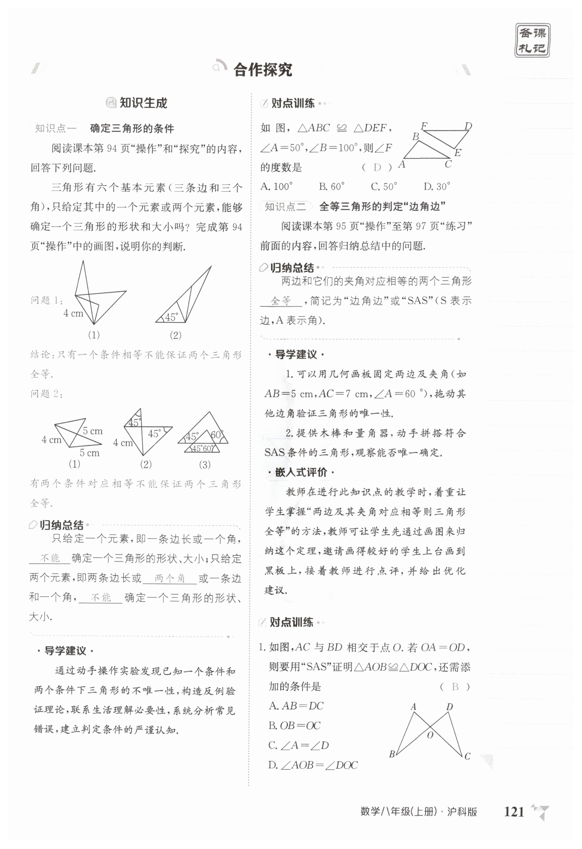 注:目前有些书本章节名称可能整理的还不是很完善,但都是按照顺序排列的,请同学们按照顺序仔细查找。练习册 2025年金太阳导学案八年级数学上册沪科版 答案主要是用来给同学们做完题方便对答案用的,请勿直接抄袭。