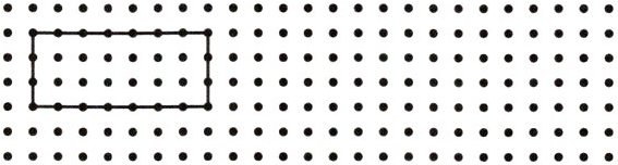 在点子图中,从某一点开始,沿水平方向数相同数量的点子连四条边(例如水平方向取5个点间距,垂直方向取3个点间距),构成一个与原长方形大小相同的长方形。