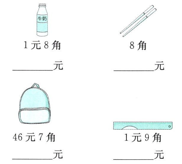 2. 难点题 把下列商品的价钱改写成以“元”为单位的小数。