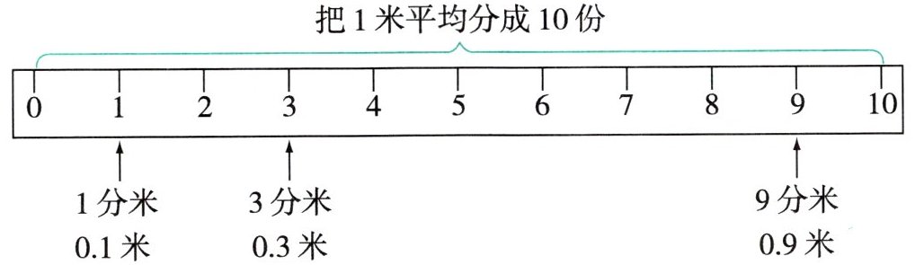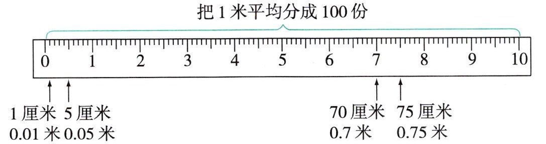 以“米”为单位的身高,“.”前面的部分代表“米”,“.”后面第一位上的数代表“分米”,“.”后面第二位上的数代表“厘米”,如下所示: