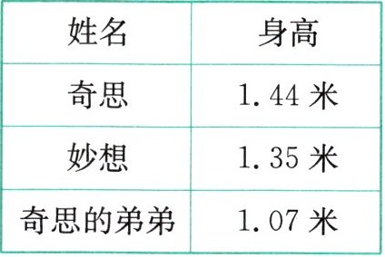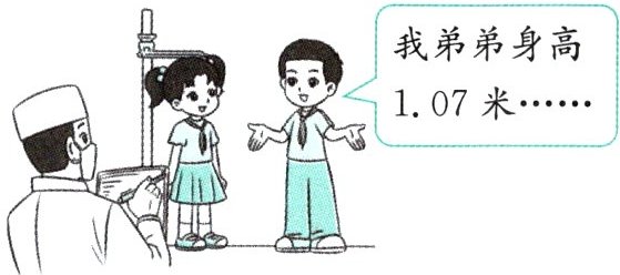 奇思的弟弟身高1.07米,是1米0分米7厘米。