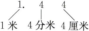 1.44米= 1米4分米4厘米,1分米= 10厘米,可推得1.44米= 144厘米= 1米44厘米。