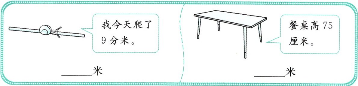 要求将9分米、75厘米转化成以“米”为单位的数。