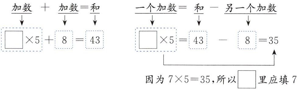 $□×5 + 8 = 43$