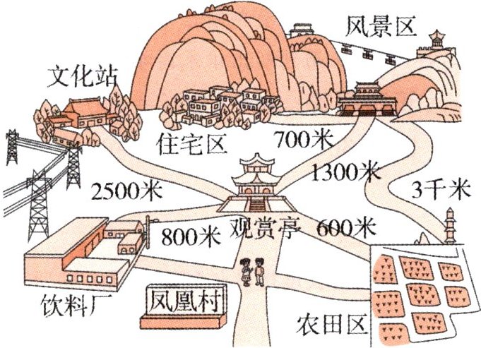(3)(答案不唯一)从文化站到饮料厂有多少米? 2500+800=3300(米)