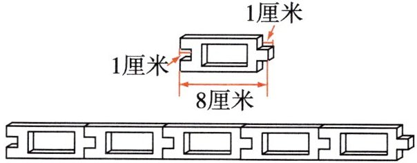 二、下面是一块拼插积木,5 块这样的积木拼插在一起。一共长多少厘米?(应用意识)(4 分)