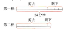 二、有两根红绳,第一根长 24 分米,第二根长 18 分米。两根红绳都剪去相同的长度后,第一根红绳剩下的长度是第二根红绳剩下长度的 4 倍。第一根红绳剩下多少分米?(5 分)