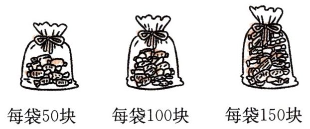 (1)(答案不唯一)每袋50块的糖买4袋。