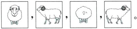 误区 判断:摄影师从一只羊的正面开始,沿逆时针方向走一圈,拍摄了四张照片,如图:。