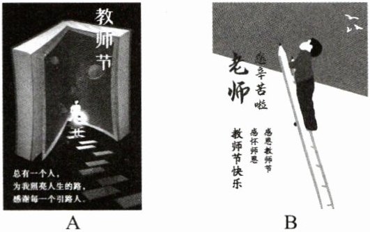 6. 【跨学科学习·美术】小雯想借海报表达对老师的感激之情。下面 A、B 两幅备选海报中,你建议他选择哪一幅?请简述理由。