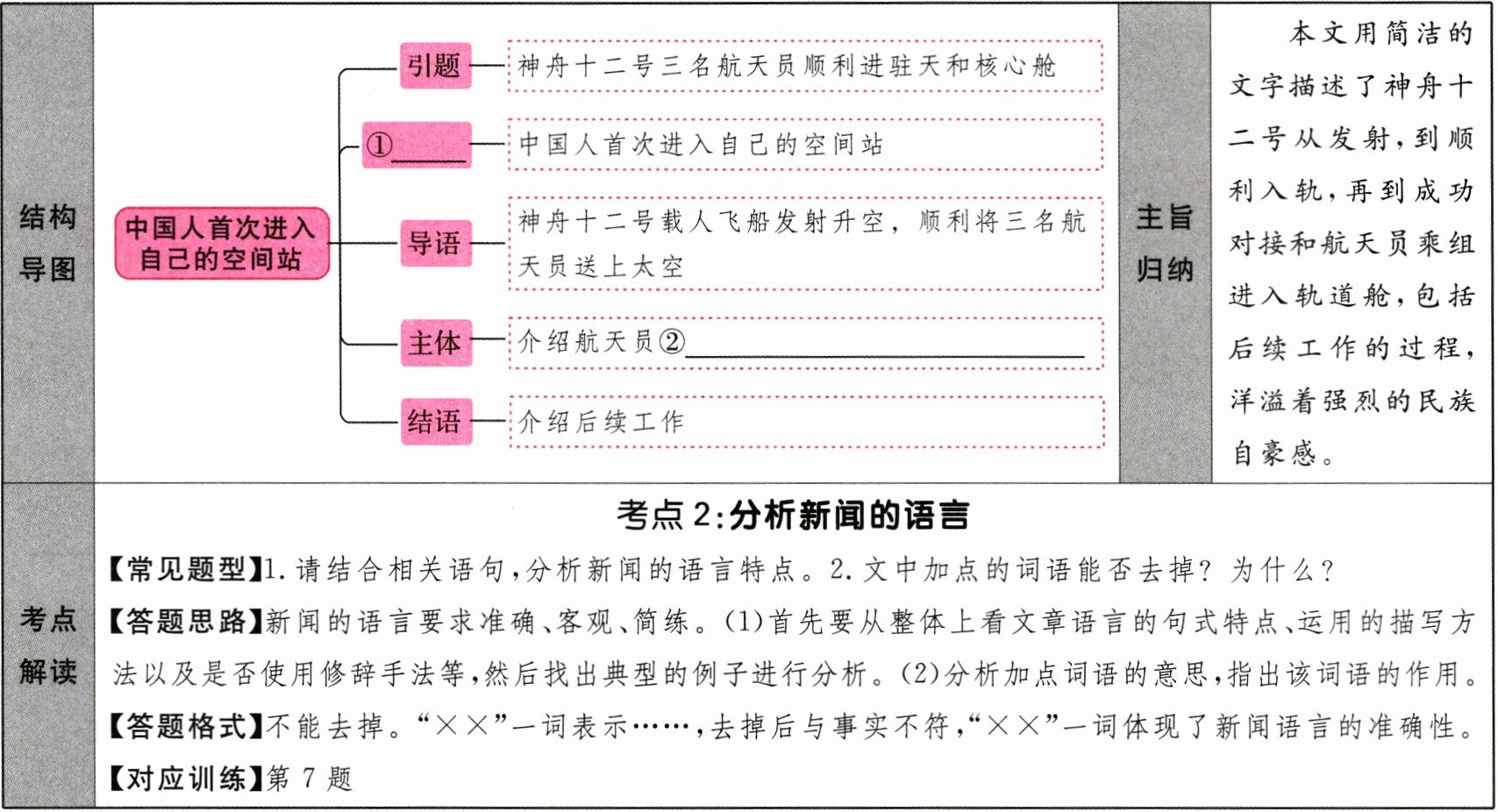 ①正题 ②进入空间站的各个环节