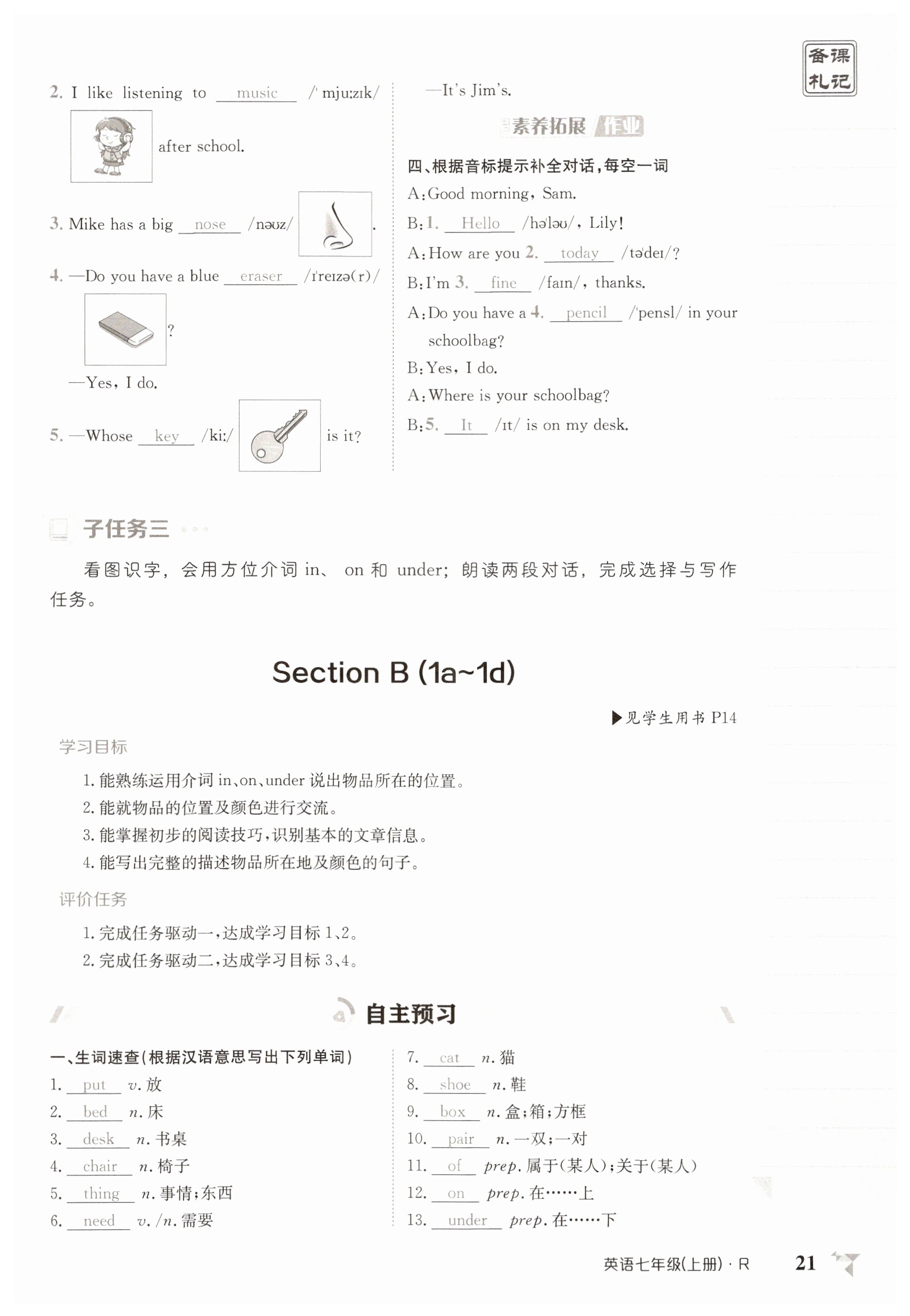 注:目前有些书本章节名称可能整理的还不是很完善,但都是按照顺序排列的,请同学们按照顺序仔细查找。练习册 2025年金太阳导学案七年级英语上册人教版 答案主要是用来给同学们做完题方便对答案用的,请勿直接抄袭。