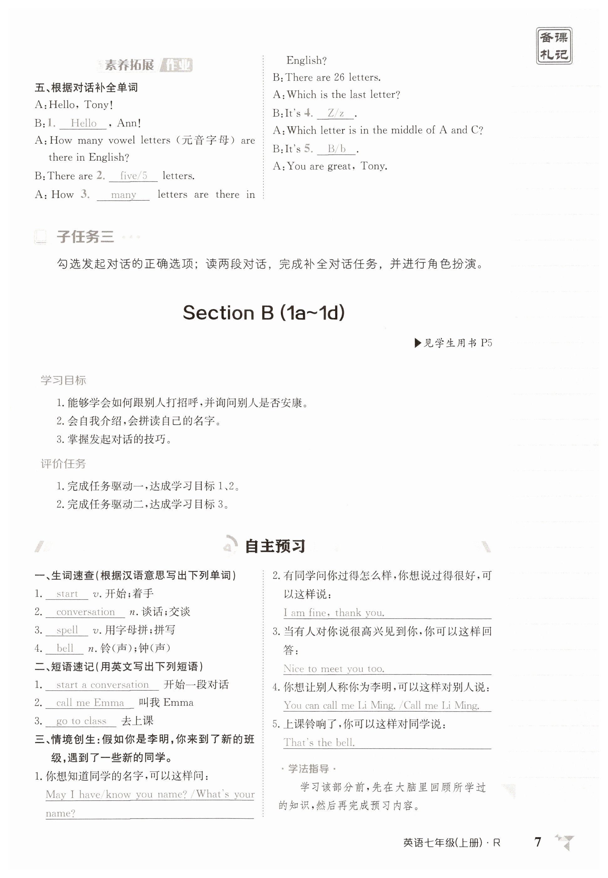 注:目前有些书本章节名称可能整理的还不是很完善,但都是按照顺序排列的,请同学们按照顺序仔细查找。练习册 2025年金太阳导学案七年级英语上册人教版 答案主要是用来给同学们做完题方便对答案用的,请勿直接抄袭。