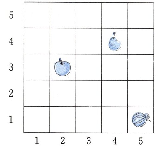 2.(4,4) (5,1) 提示:桃子画在第3列、第2行的位置上。