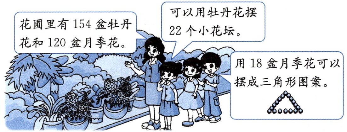 **问题(1)导入** 平均每个小花坛有多少盆牡丹花?先估一估,再用竖式计算。(教材 69 页例题)