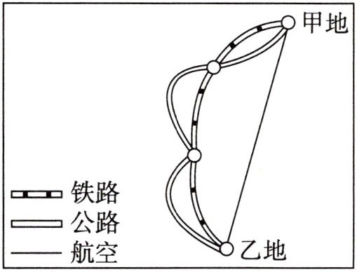 4. 生活运用题 雯雯的爸爸去乙地出差,从雯雯家(甲地)到乙地有三种交通方式(如下图)。哪种交通方式的路程最短?说一说你的理由。