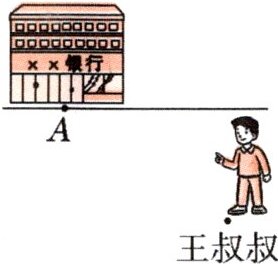 2. 难点题 王叔叔想去路旁 $A$ 处的银行存钱,他怎么走能尽快到银行?请你在图中画一画。