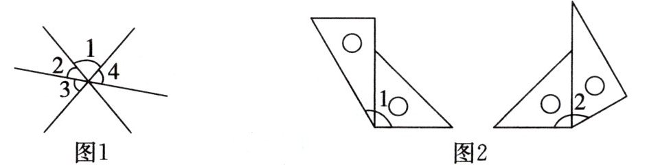 )。(2)如图 2,用一副三角尺拼角,$\angle1 = ($