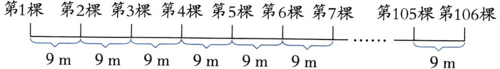 甬路的总长度:$9×(106 - 1) = 945$(m)