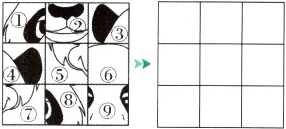 切割并打乱顺序,如下图。请在另一张方格纸上填上相应的序号,还原大熊猫图。