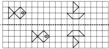 3. 以虚线为对称轴,画出小船的轴对称图形。