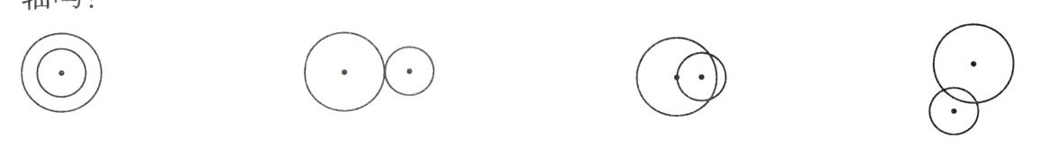 1. 重点题 淘气用两个大小不同的圆片分别摆成了下面的图形,你能画出每个图形的对称轴吗?