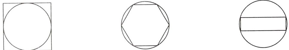 提示:分别画出图形中正方形、正六边形、长方形的两条对称轴,两条对称轴的交点就是各图形中圆的圆心。