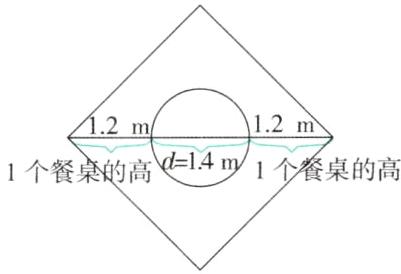 分析:正方形桌布的对角线的长应等于2个餐桌的高加上1个圆形餐桌桌面直径的长。如图所示: