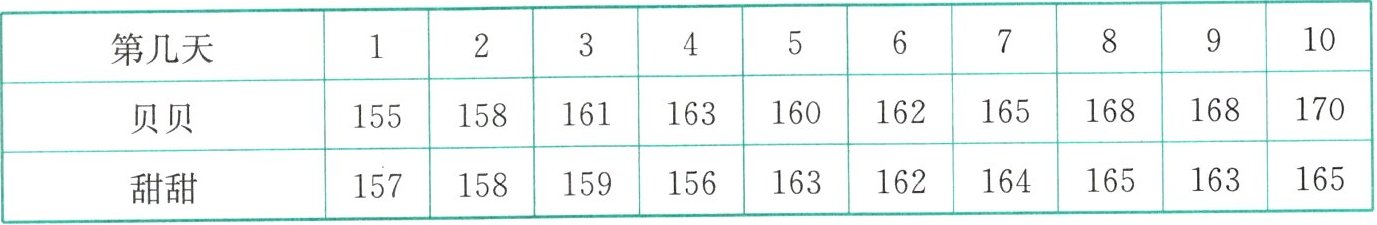 2. 难点题|贝贝和甜甜准备参加学校运动会1分跳绳比赛,下面是她们10天1分跳绳训练成绩统计表。