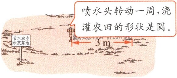 典型例题** 喷水半径是 $ 3\ m$,喷水头转动一周,能浇灌多大面积的农田?(教材 16 页例题)