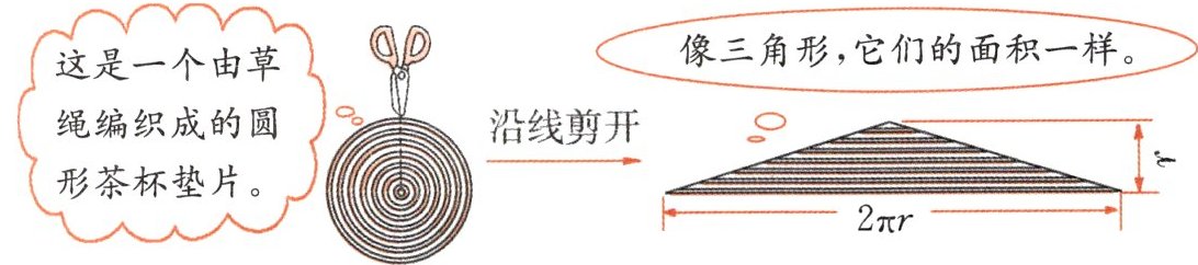 )。三角形的面积$ =\frac{底×高}{2},$所以圆的面积:$ S = \frac{(