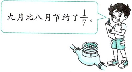 九月比八月节约了$\frac{1}{7}$,则九月用水量是八月的$1 - \frac{1}{7}=\frac{6}{7}$。