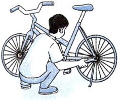 自行车的车轮是圆的,车条相当于车轮所在圆的半径,车条长度不都相等,车轮的形状就不是圆了,只有车条的长度都相等了,车轮的形状才是圆,车轮才能平稳运行。