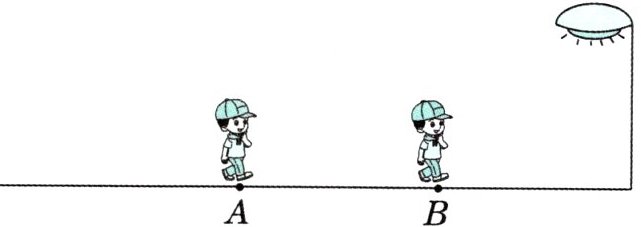 观察影子的变化,发现从点 A 走到点 B,影子越来越(